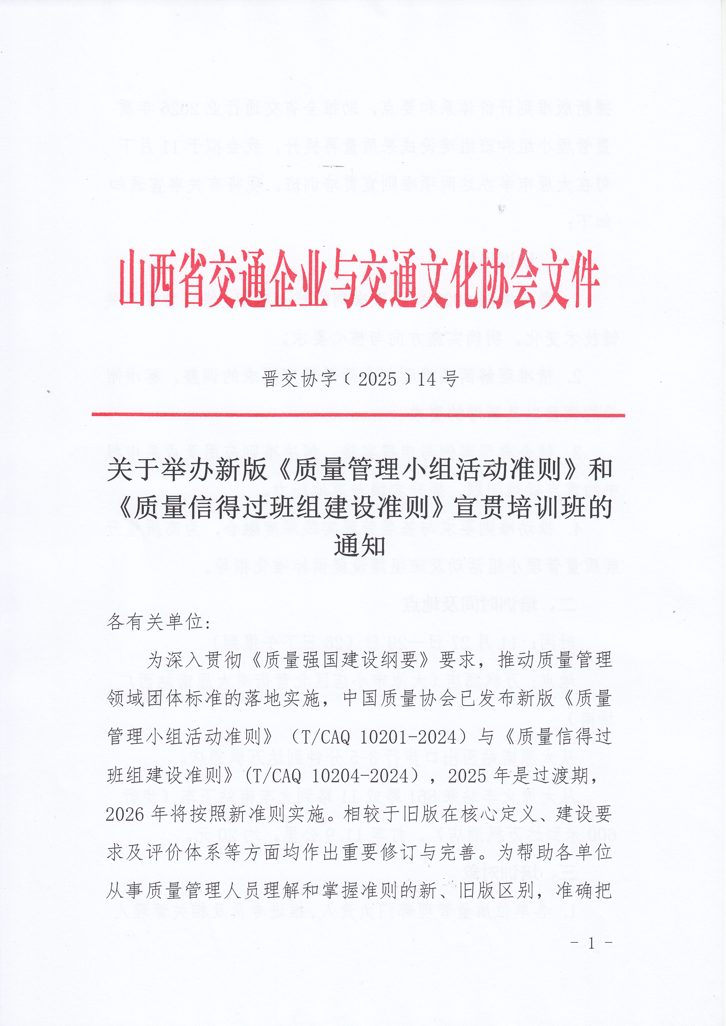 关于举办新版《质量管理小组活动准则》和《质量信得过班组建设准则》宣贯培训班的通知