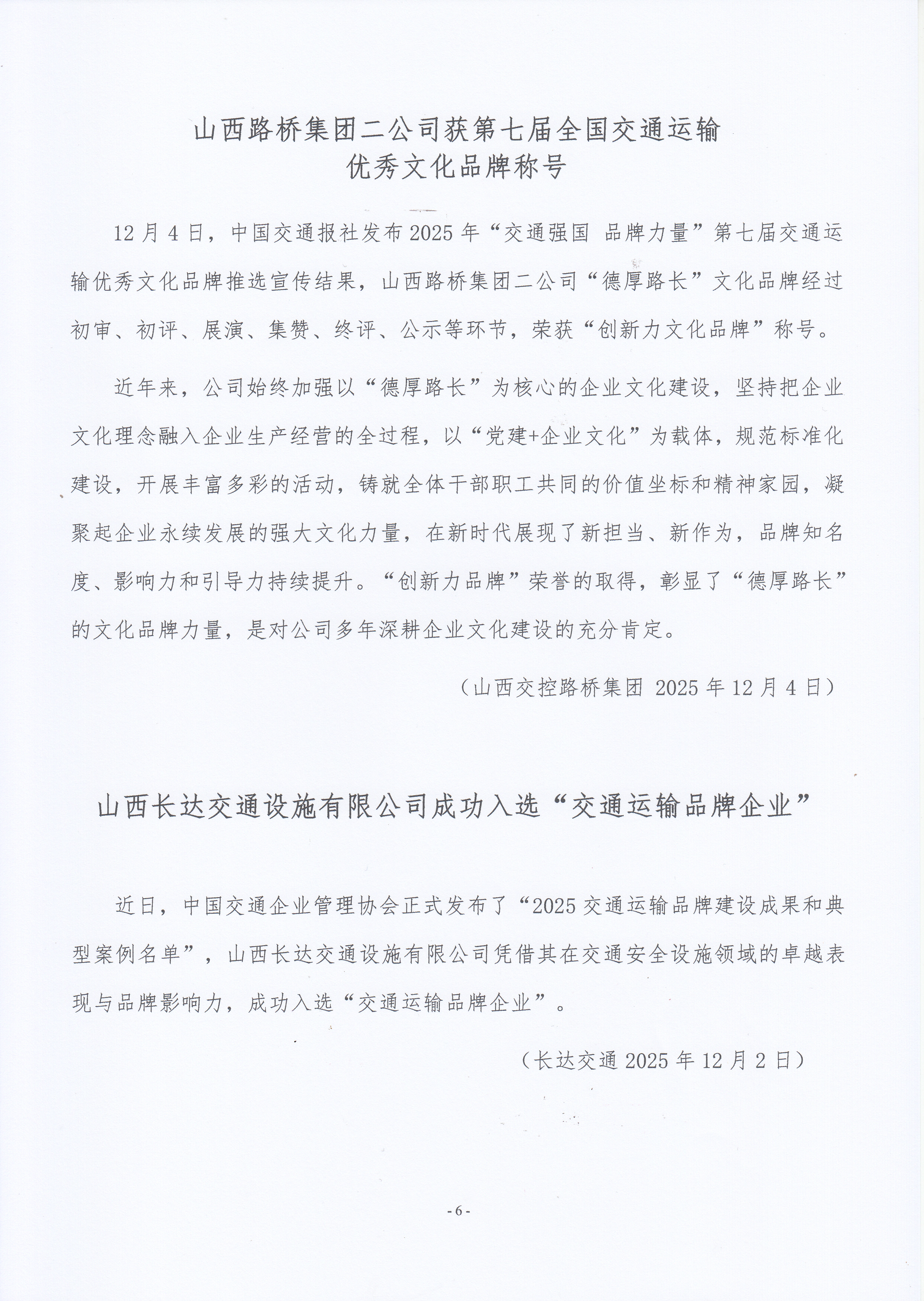 山西交通企业信息第76期